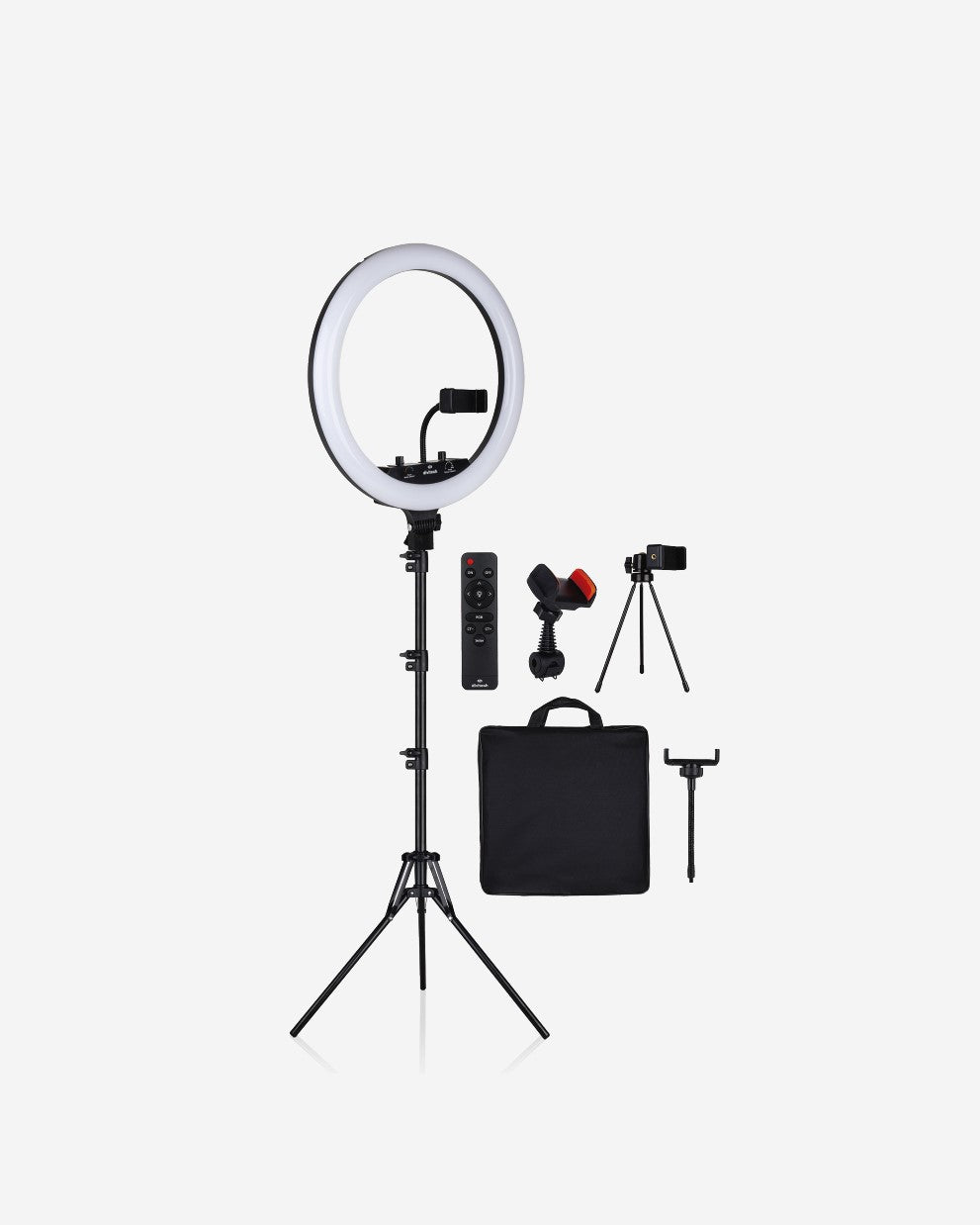 Esta lámpara de aro premium fue diseñada para proporcionar luz continua y permitir al usuario hacer sesiones de fotografía, maquillaje, aplicaciones de pestañas o vídeos tutoriales para las redes sociales. Este modelo tiene programadas algunas tonalidades de iluminación como luz fría total, luz cálida, una combinación de ambas y 25 variantes de colores que te ayudaran a obtener el resultado óptimo en tus imágenes, vídeos o cualquier trabajo que realices.